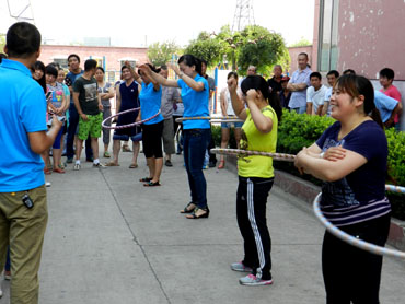 Advancing with the times, striving for realism earnestly, solidarity and cooperation, working happily |