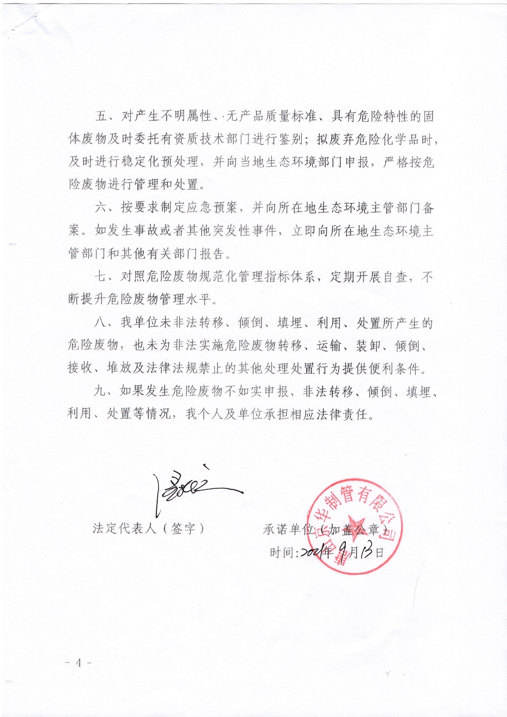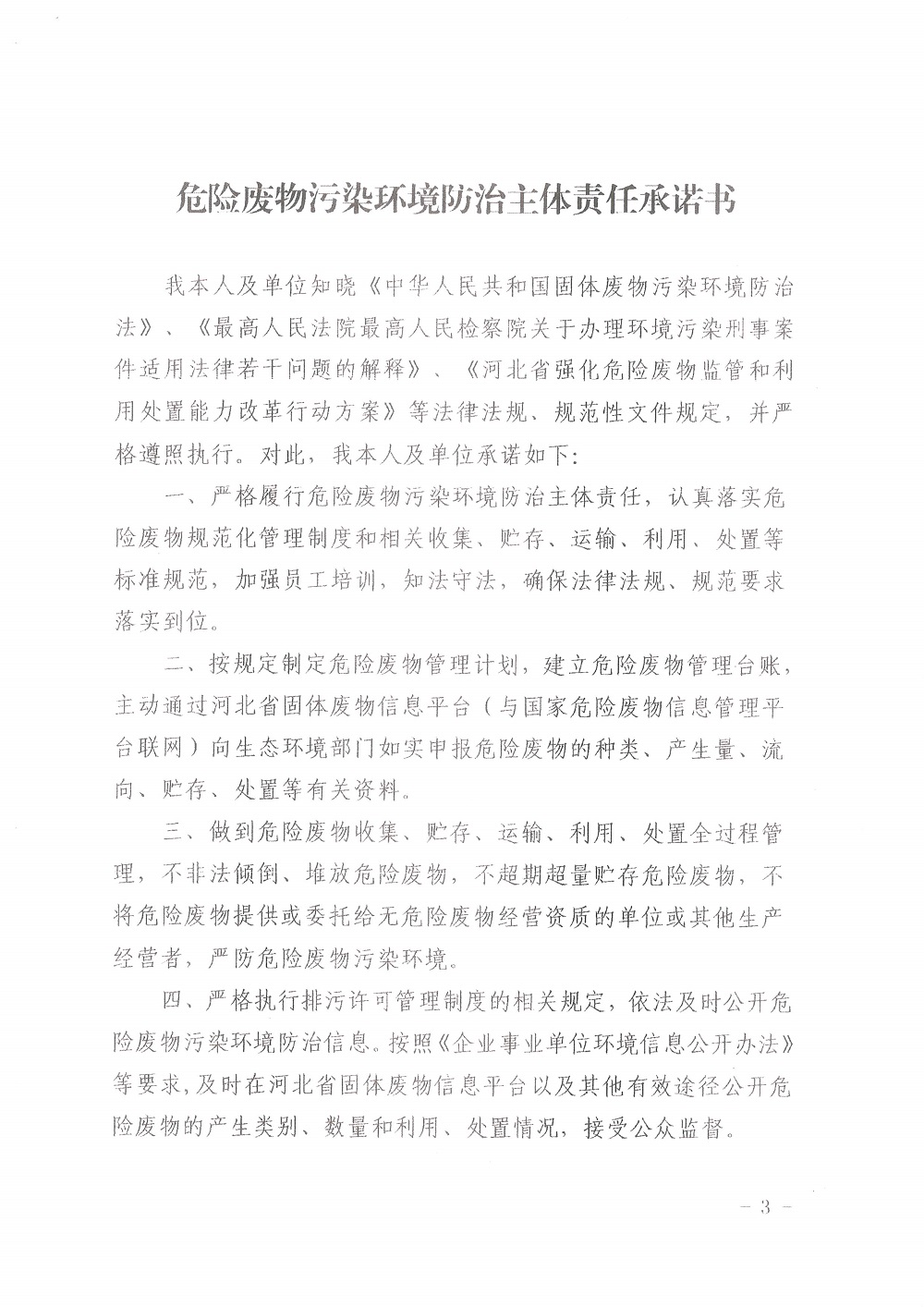 唐山京華危險廢物污染環境防治主體責任承諾書