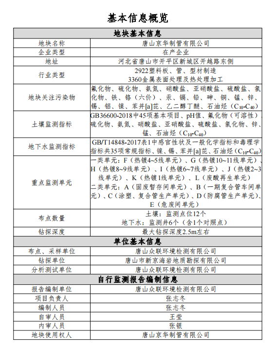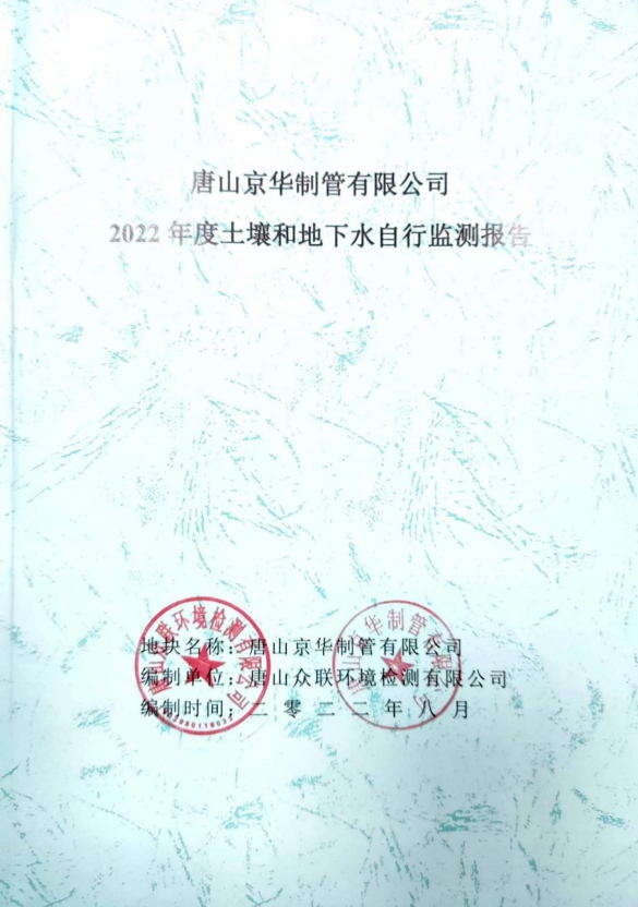 唐山京華制管有限公司2022年度土壤和地下水自行監測報告(公示版)