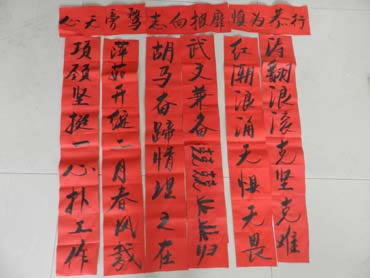活動中,職工們紛紛拿起毛筆,書寫出對生產大豐收的殷切期盼和來年好日子的美好憧憬,值得一提的是,員工李東楊還為公司中層以上領導準備了不同的春聯(lián),頗具新意地以領導的姓名作聯(lián)。不一會兒,一幅幅喜慶的春聯(lián)就展現(xiàn)在了大家的眼前。整個活動洋溢著新年的喜慶氣氛,蕩漾著墨汁的撲鼻芳香。據悉,在春節(jié)來臨之際,這些鋪滿新春祝福的春聯(lián)將陸續(xù)張貼到全廠車間、生活區(qū)。