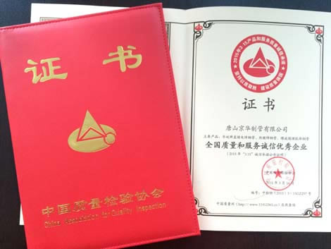 近日,唐山京華榮獲由中國質量檢驗協會授予的“全國質量和服務誠信優秀企業”稱號,這是對我公司產品質量和服務質量的充分肯定。“以誠信謀發展”是唐山京華不變的理念,誠信的產品質量與服務是公司不斷發展壯大的根基。