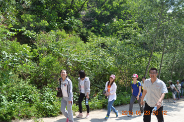 祖山位于秦皇島青龍縣境內,其最高峰天女峰,海拔1428米,當代詩人臧克家老先生曾以“畫境詩天”贊之。望著高聳的山峰和蜿蜒上行的臺階,大家紛紛表現出了京華人不懼挑戰的精神,年齡最大的內務處管理員老呂壯言要將祖山征服在腳下。