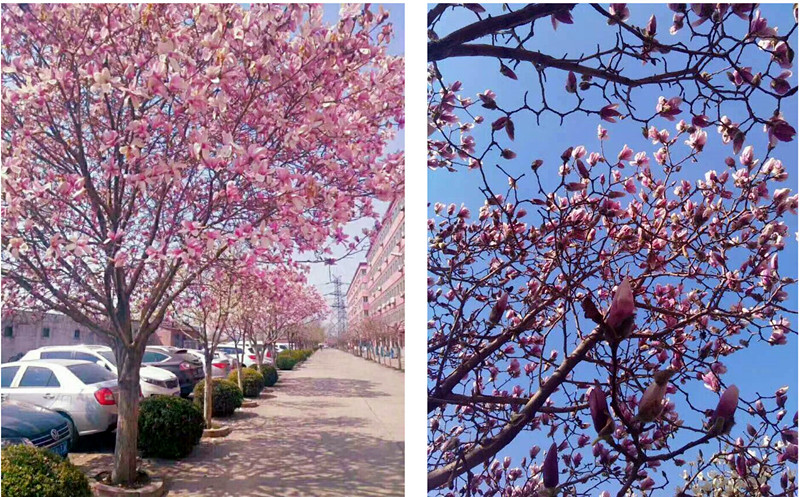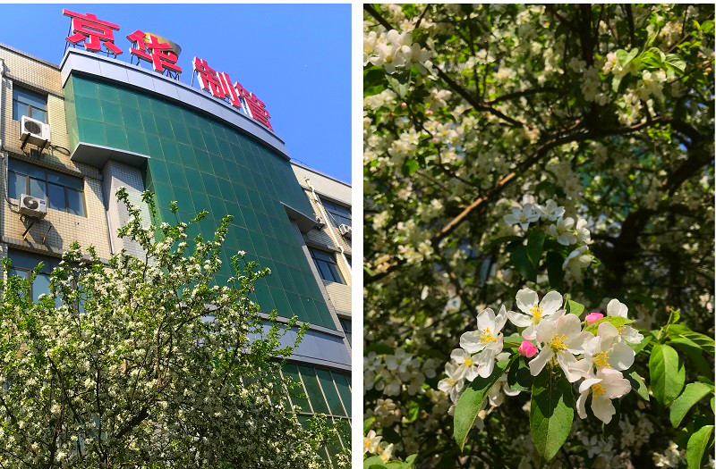 一樹樹榆葉梅,燦爛多姿,清香宜人,在晨露里含笑綻放,在春風里搖擺著嬌媚的身姿。京華廠區里的海棠高低錯落、疏密有致。