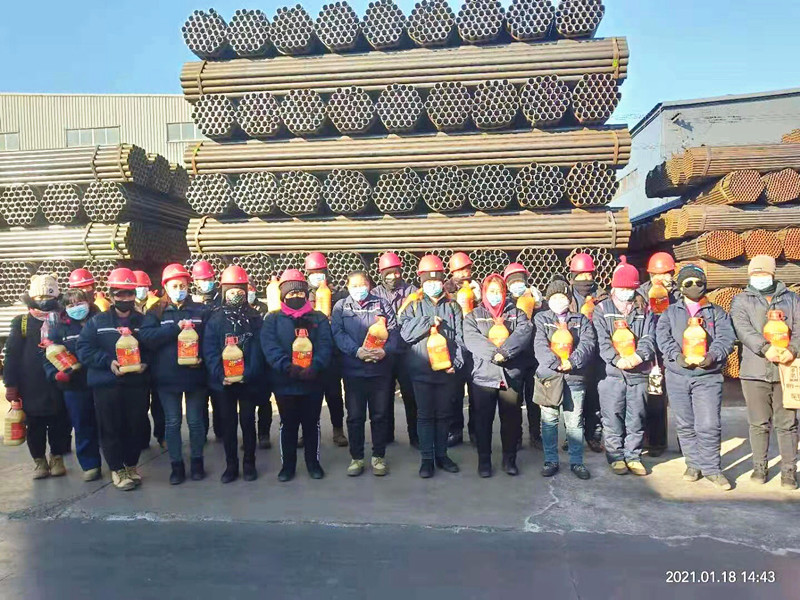 歡聲笑語辭舊歲,吉星高照迎新年。值此2021年春節來臨之際,公司為表達對每一位員工的關愛,感謝全體員工為公司發展付出的辛勤努力,唐山京華制管有限公司為全體員工發放了米、油、面等春節福利,將關愛和溫暖送到每一位員工的手里。